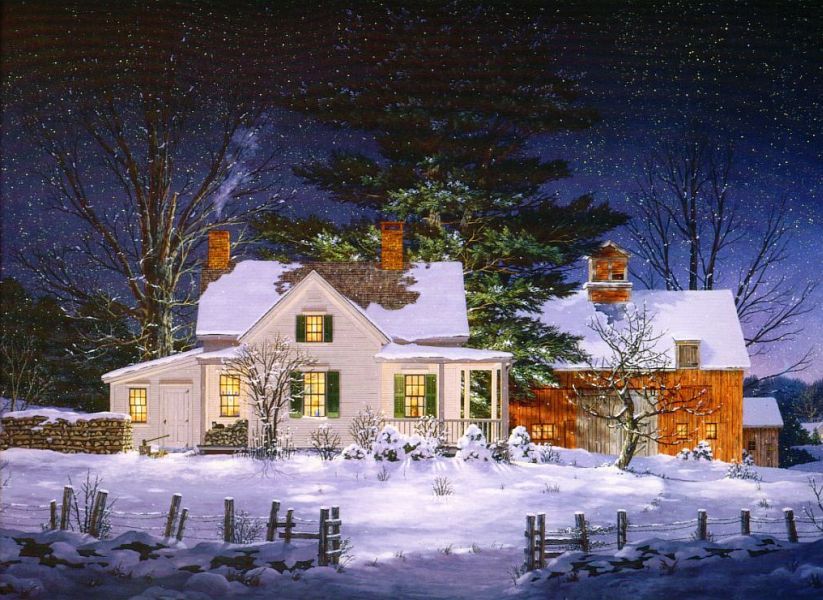 I remember looking through the frost edged windows with my brother and cousins. We would see the snow covered hills and the green pines dotting the horizon. Often the moon would be hanging bright and promising in the night sky. Maybe the most beautiful thing about Christmas was the amazing white of the snow outside, while the crackling fire and sparkling candles warmed us in the house. Outside in the fenced pasture, Grandpa’s old Morgan horse was eating the hay grandpa had left for him earlier in the day. As we looked out into that wonderland, sometimes, we would see deer eating in the pasture along side grandpa’s horse. It was always a treat to hear wolves howling in the winter night, as the moonlight bounced across the snow making it sparkle like millions of diamonds on a blanket of white.